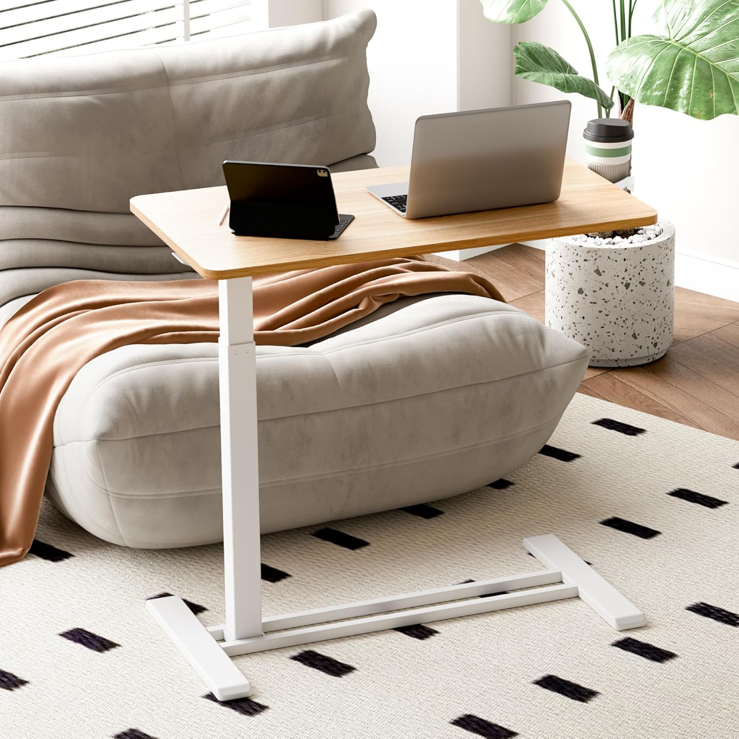 - Portable and Mobile – Designed for convenience, this rolling computer desk is ideal for work or study, whether at home or in the hospital. Its low-profile base with smooth-rolling wheels allows easy movement and tucks under furniture as low as 1.2 inches, saving space and enhancing adaptability.