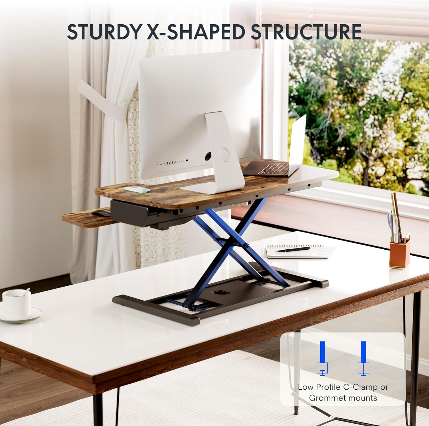 - Quick & Simple Setup – Your desk riser arrives nearly fully assembled—simply unbox it, attach the keyboard tray, and you’re ready to go! No tools or complicated instructions are needed, so you can start working in minutes.