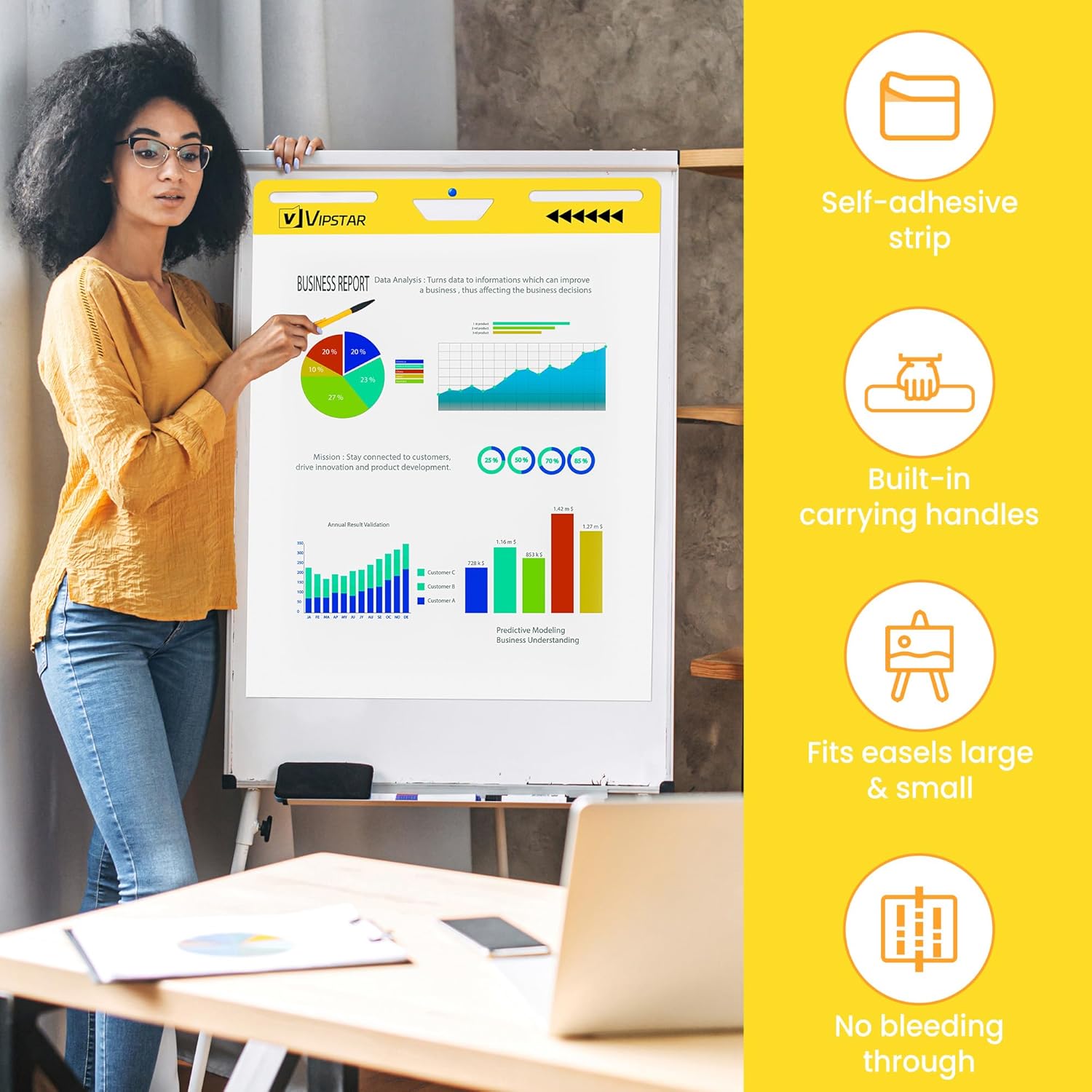 (6 Pads) Sticky Easel Pad 25 in x 30 in Post, Large Self Stick Flip Chart Premium Paper for Teachers, Mount to Most Surfaces and Bleedproof, Super Sticking Power