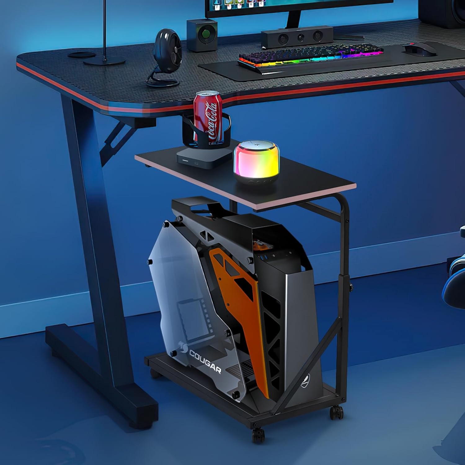 - The ergonomic height adjustable computer tower stand has a manual height adjustment function, ranging from 22.8 inches to 32.3 inches, allowing you to use it as a CPU stand under or next to a table, or as a C-table above a bed/sofa. The PC tower bracket supports all computer cases, including the full tower ATX case. Customize the height to enhance heat dissipation and place your arms in the most comfortable position on the computer stand.