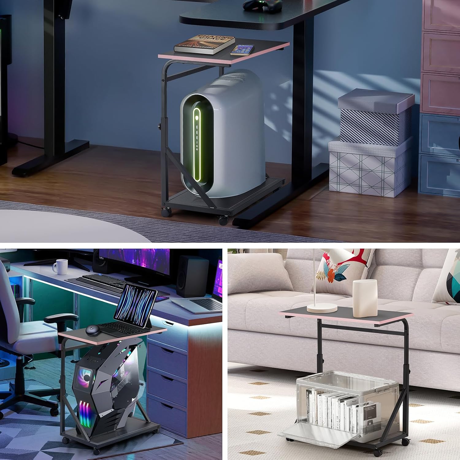 Ergonomic Height Adjustable Computer Tower Stand, 2-Tier CPU Holder Cart Under Desk, PC Floor Stand for Office Gaming Black and Pink