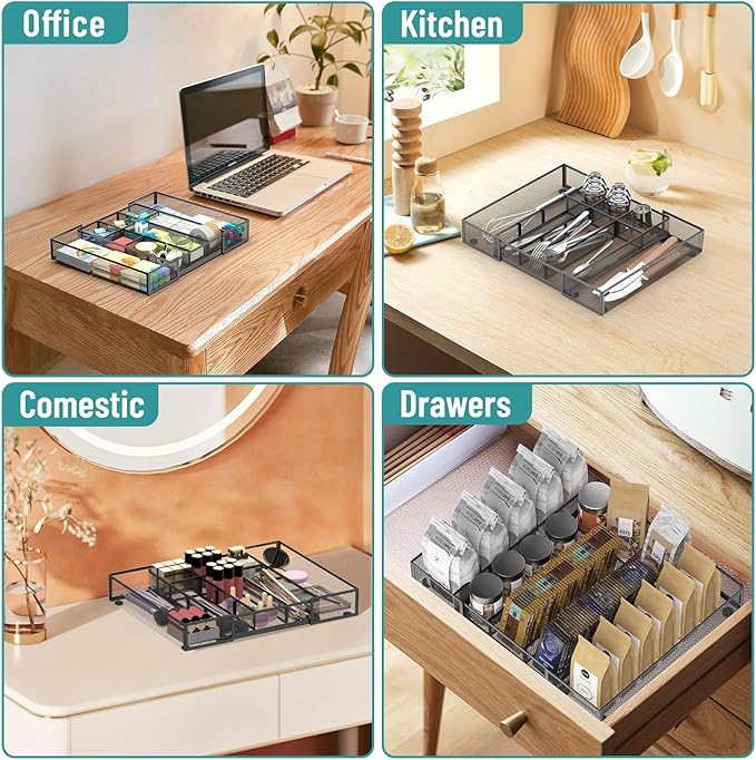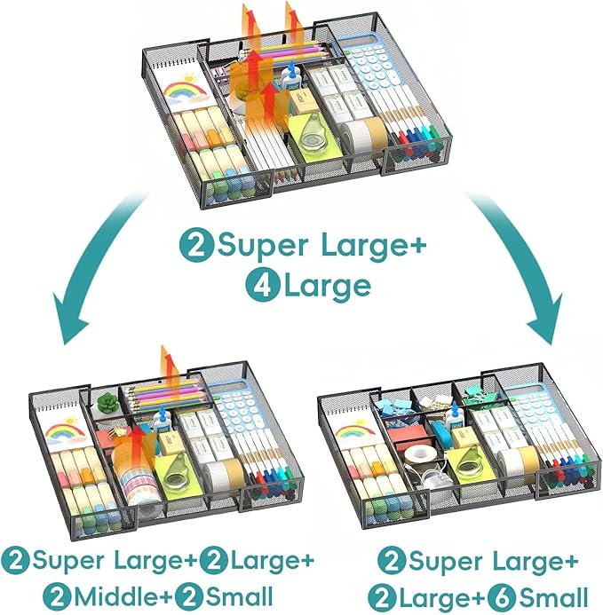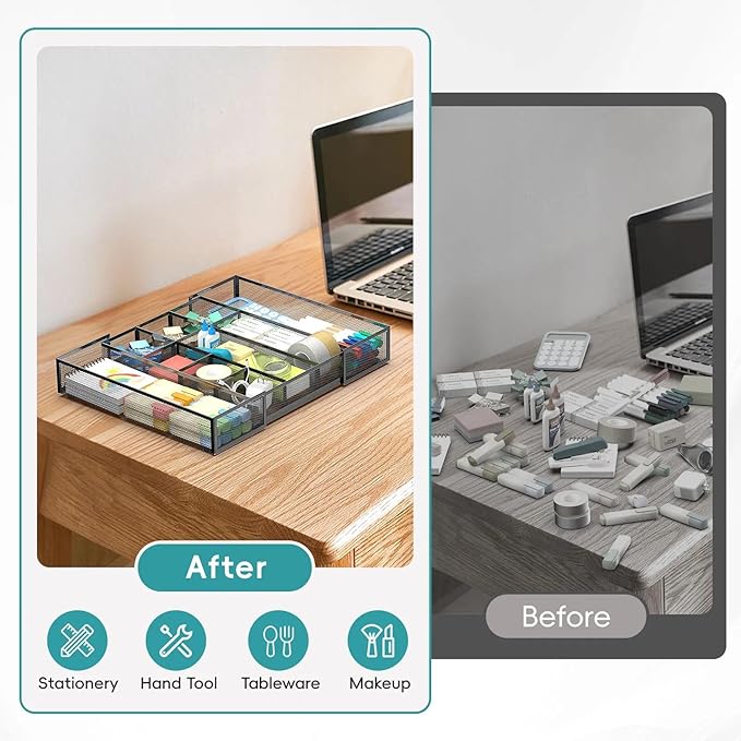 - Expandable Drawer Organizer: The Reeplan drawer organizer tray features 2 extendable sliding compartments, designed to fit any drawer size, with an adjustable length ranging from 8.74 inches to 16 inches. This drawer organizer is especially suitable for your desk, making it the perfect office supply organizer and an ideal choice for your office accessories.