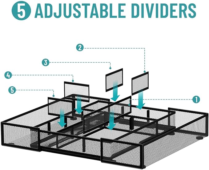 - Adjustable Partition Panel: Our drawer organizer comes with 5 removable dividers. You can configure the sizes as needed to accommodate various desktop accessories such as pens, erasers, staplers, tape measures and more. Dimensions:11.8 x 16 x 2.24 inches.