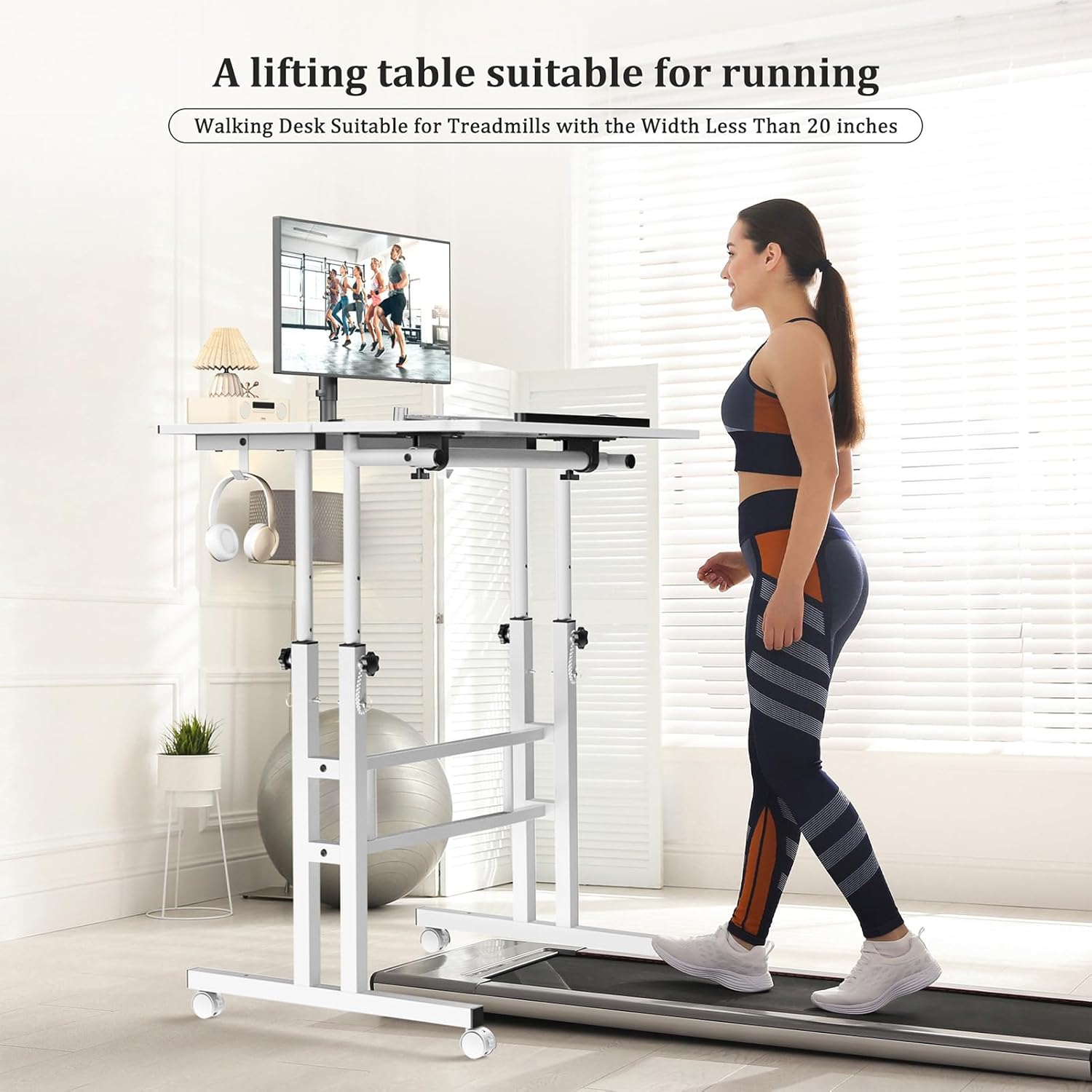 - Adjustable Treadmill Desk: Walking pad desk adjust height from 27.9 inch to 45.3 inch for you to sit or stand, 23.6 inch x 23.6 inch desktop for more storage space, the distance between the two legs is 21.6 inches, which is suitable for standing on most treadmills