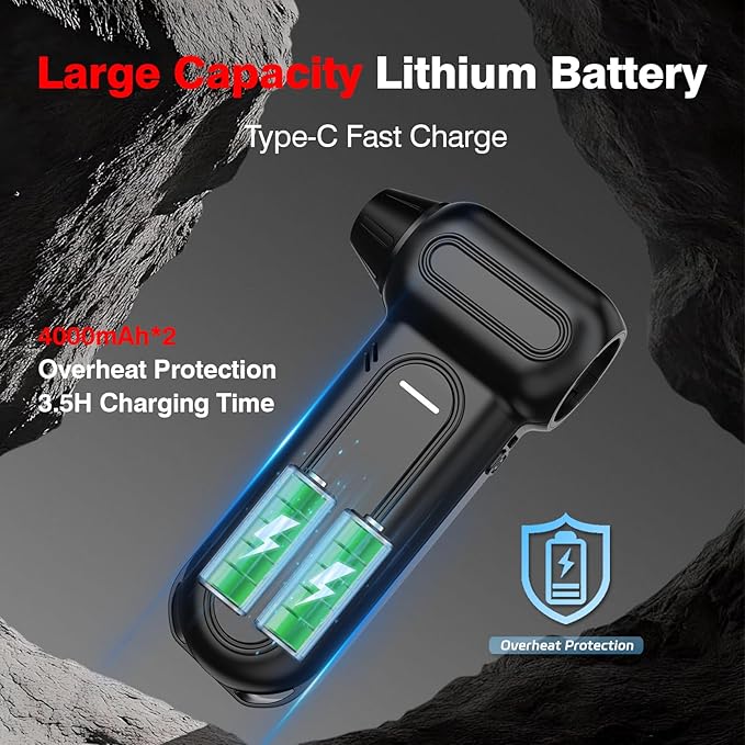 - 【8000mAh Long Battery Life + Fast Type-C Charging】 Enjoy up to 110 minutes of continuous use on low gear. The large 8000mAh rechargeable battery supports Type-C fast charging, fully charged in just 3–3.5 hours — perfect for both home and professional cleaning.