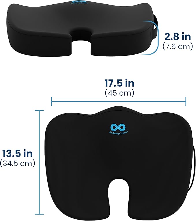 Everlasting Comfort Doctor Recommended Memory Foam Seat Cushion for Office Chairs & Car - Ergonomic Office Desk Accessories - Cushions for Tailbone Pain Relief, Sciatica (Black Cooling, Large)