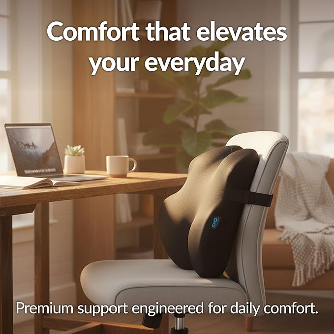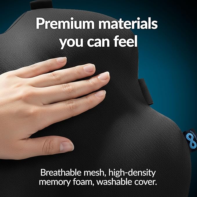 - ENGINEERED FOR LASTING PERFORMANCE: The dense memory foam core provides consistent back support for office chair or car use without collapsing. Lightweight and portable, it moves easily between work chairs, couches, or vehicles. Unlike oversized cushions, it offers lower back and neck support without unnecessary bulk. A long-lasting addition to home or office furniture, this cushion makes a thoughtful gift for students, drivers, or anyone who values upper and lower back support while sitting