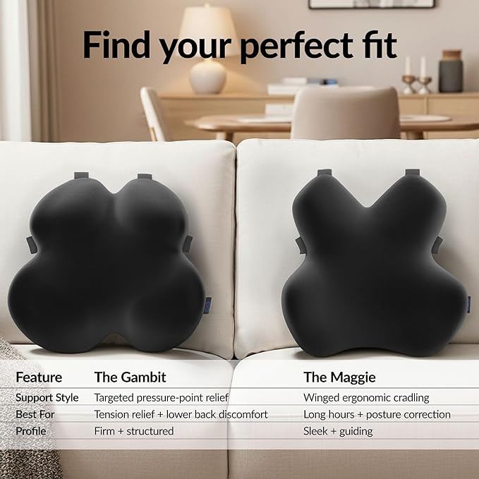 - PREMIUM LUMBAR SUPPORT TO ELEVATE YOUR SITTING EXPERIENCE: Introducing Elevate Series Signature Back Cushion - The Gambit. It’s named after our CEO’s dog, a reminder of comfort, loyalty, and everyday support. Made with stronger, quality materials, this desk chair cushion balances bubble foam support with long-lasting comfort - not overly hard, not too soft. Engineered to gently support the natural curve of your spine over time. Ideal for home offices, gaming sessions, or long commutes
