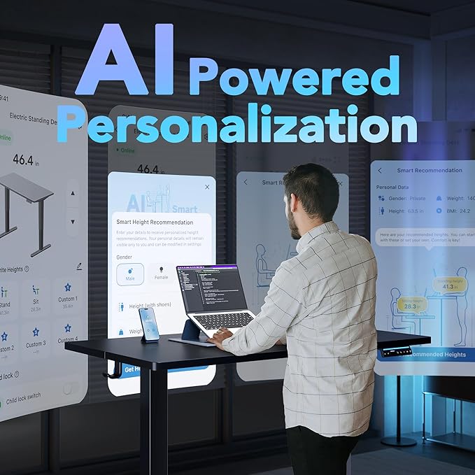 - SMART CONTROL: Experience the new smart electric standing desk that uses an App(Ergo BQ) to find your perfect sit-stand height. Enjoy hands-free control with Alexa, Google, and Siri for effortless ergonomic comfort.