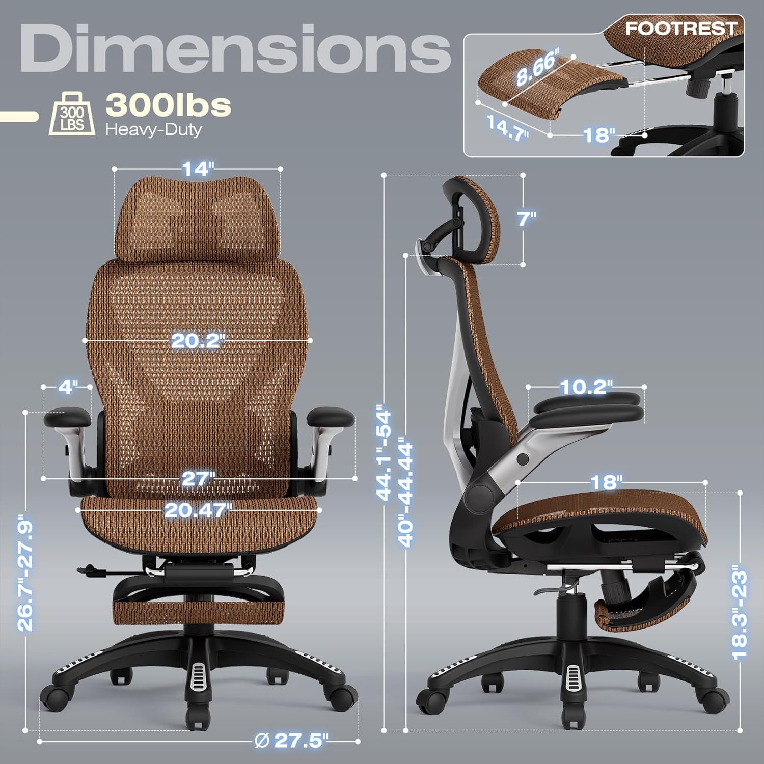 ELABEST X100 Ergonomic Office Chair with Footrest, Big and Tall Home Desk Chair with 5D Flip-Up Arms, Adjustable 10D Lumbar Support,High Back Rolling Computer Chair, Swivel Mesh Chairs