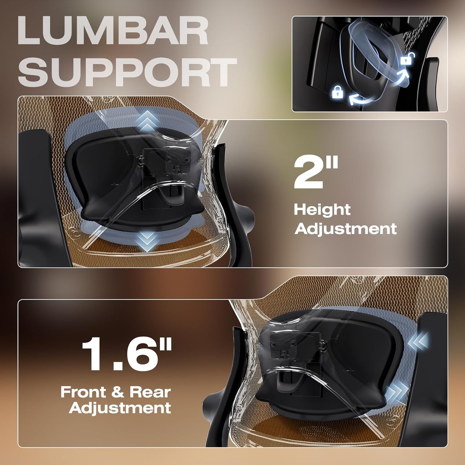 - ăEngineered with Dynamic Spinal Alignment Systemă3D Synchro-Tilt LumbarïŒLockable ±1.6" depth spring-loaded auto-tracking/±2" height/15° rotationïŒwith force-sensitive springs mimics natural spine curvature, certified by AEP* for 12hrs+ fatigue reduction in ergonomic chairs (*American Ergonomics Partnership)