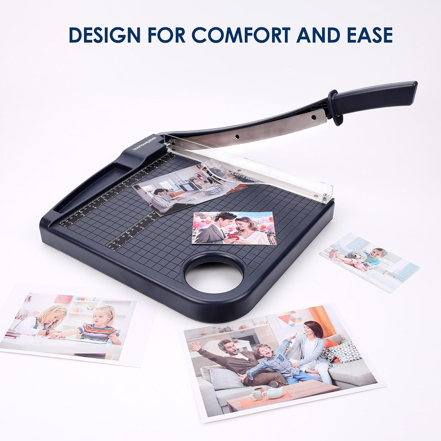 - Multifunctional Paper Trimmer: Designed with a safety guard, a safety latch, and anti-slip rubber pads, this professional paper cutter/trimmer can cut 12 sheets (20-16 lb) at a time safely for multiple purposes of use; a paperclip storage convenient for quick and hassle-free paper waste disposal or paperclip, binder clips, and small accessories storage