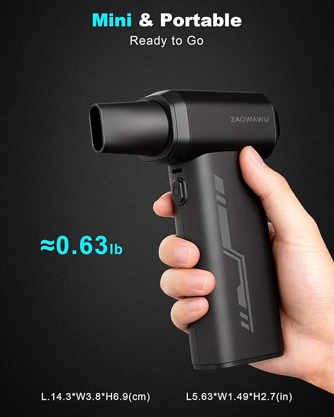 - [Compact & Portable Cordless Air Duster] Weighing only 0.63 lbs, this handheld air blower is easy to store in your laptop bag or car glovebox. It’s a perfect gadget gift for men and tech lovers. With the included lanyard, this crumb cleaner is always within reach for quick home or outdoor touch-ups.