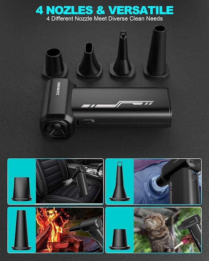 - [Professional Electronics Duster for All Devices] More than just a computer duster, it's an all-in-one electronics cleaning kit. With 4 precision nozzles and 2 soft brushes, it safely cleans motherboards, PS5 consoles, car dashboards, and delicate lab equipment without the static or moisture risks of traditional air spray.