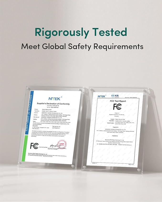 - Verified Eco-Friendly Materials: This stand desk is FSC certified for formaldehyde emissions and meets ISED safety standards; ETL certified; helps you to build your eco and healthy office life