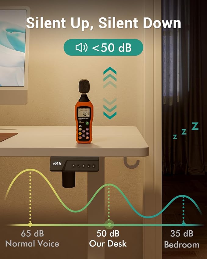 - Smooth Height Adjustment: This adjustable desk is equiped with 6th Gen electric lift system allows you easily adjust the desk's height from 28.3" to 46.5"(noise levels below 45 dB when motor operates)