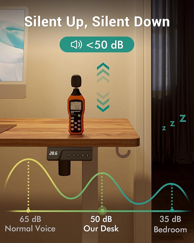- Smooth Height Adjustment: This adjustable desk is equiped with 6th Gen electric lift system allows you easily adjust the desk's height from 28.3" to 46.5"(noise levels below 45 dB when motor operates)