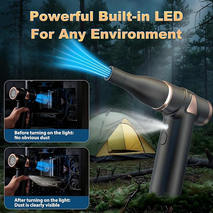 - 【3 Adjustable Speeds】Gentle Mode (80,000 RPM): Perfect for starting a campfire. Standard Mode (100,000 RPM): Great for cleaning dust. Powerful Mode (150,000 RPM): Easily inflates air mattresses and tents! One tool for home, office, and outdoor adventures