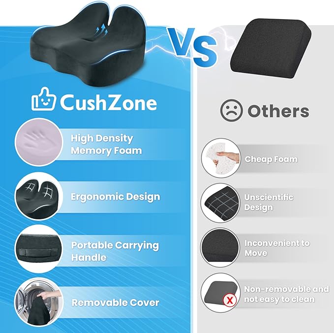 - Advanced Appearance Design: With its larger size and extended tailbone support design, the CushZone seat cushion is ergonomically designed to accommodate many different body shapes, allowing you to sit more upright and reduce the stress of sitting for more than 8 hours