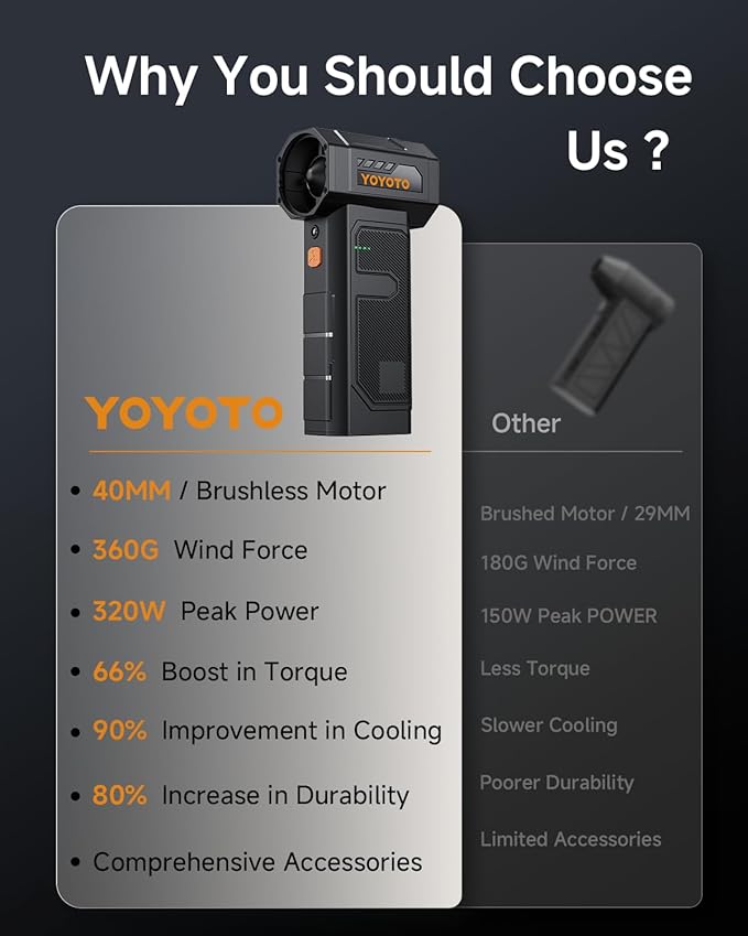 - 【Always Here to Help】YOYOTO stands by every electric air duster with lifelong after-sales support. Whether you have a question, need troubleshooting help, or want advice on getting the most from your tool—rest assured that we are here for you. Feel free to reach out at any time.