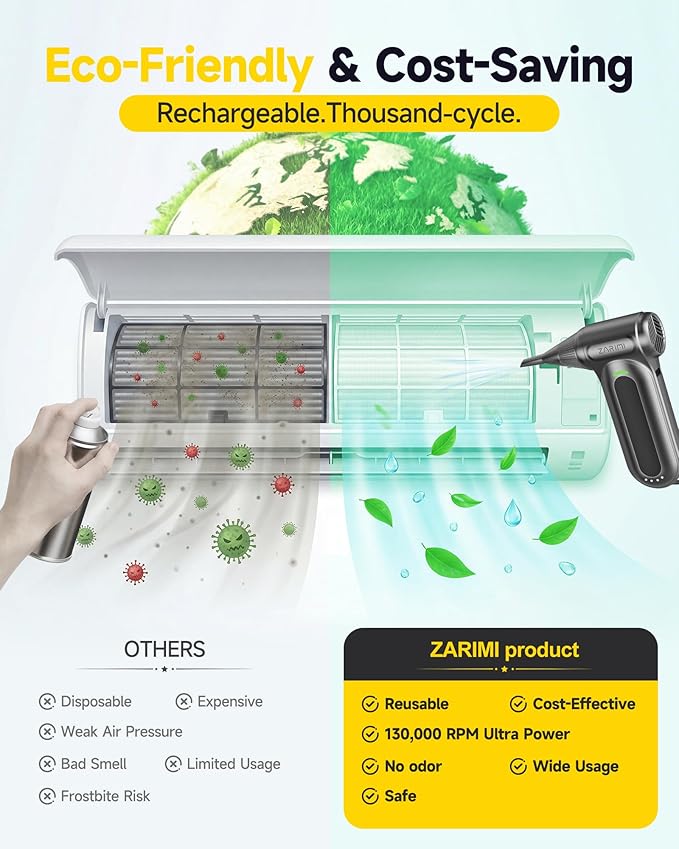 - Replaces Compressed Air Cans — Skip disposable canned air refills. This reusable ZARIMI compressed air duster delivers reliable cleaning power with no single-use cans—more cost-effective and helps reduce waste.