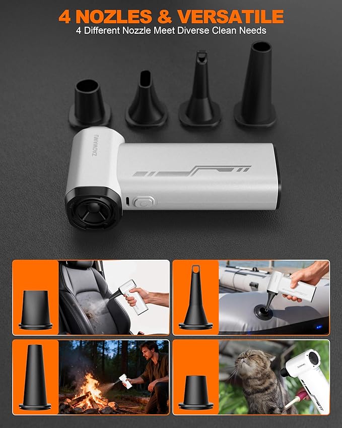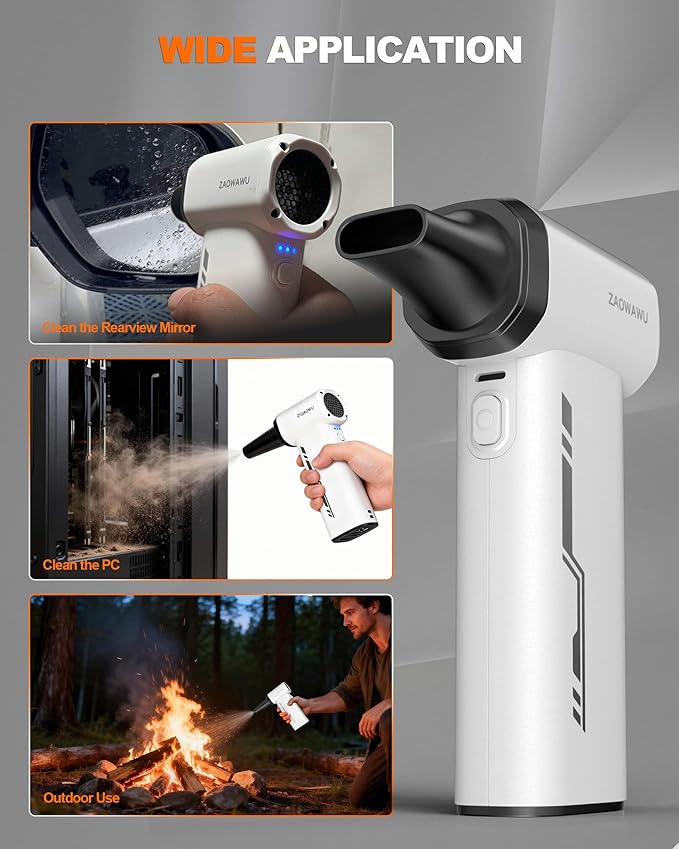 • [Professional Electronics Duster for All Devices] More than just a computer duster, it's an all-in-one electronics cleaning kit. With 4 precision nozzles and 2 soft brushes, it safely cleans motherboards, PS5 consoles, car dashboards, and delicate lab equipment without the static or moisture risks of traditional air spray.