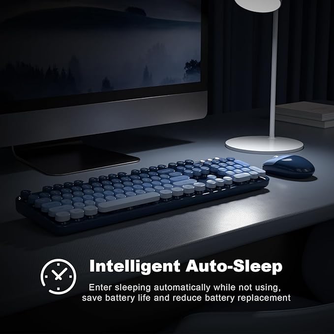 MOFII Wireless Keyboard and Mouse Combo, Full Size 2.4G Plug and Play Typewriter Retro Round Computer Keyboard and Mouse Set for Windows, Computer, Desktop, PC, Notebook - (Sea Blue Gradient)